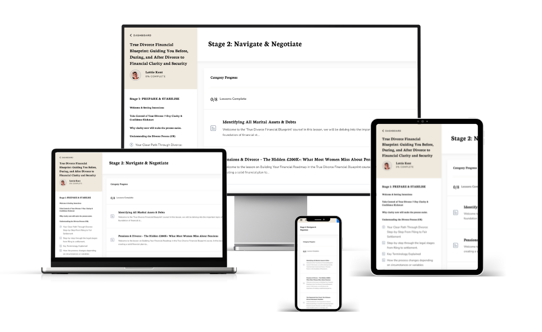After supporting countless clients, Lottie saw that women needed more than financial clarity. They needed joined-up support across the legal, emotional, and practical parts of the process. Working with trusted family law solicitors and specialist divorce coaches, she created The Divorce Clarity Blueprint to give women a simple, structured roadmap from the very start.