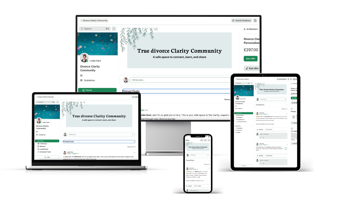 Join a private space where women just like you share support, guidance, and encouragement throughout the divorce journey. Inside, you’ll find expert prompts, accountability check-ins, and real conversations that make you feel less alone and more in control of every step.